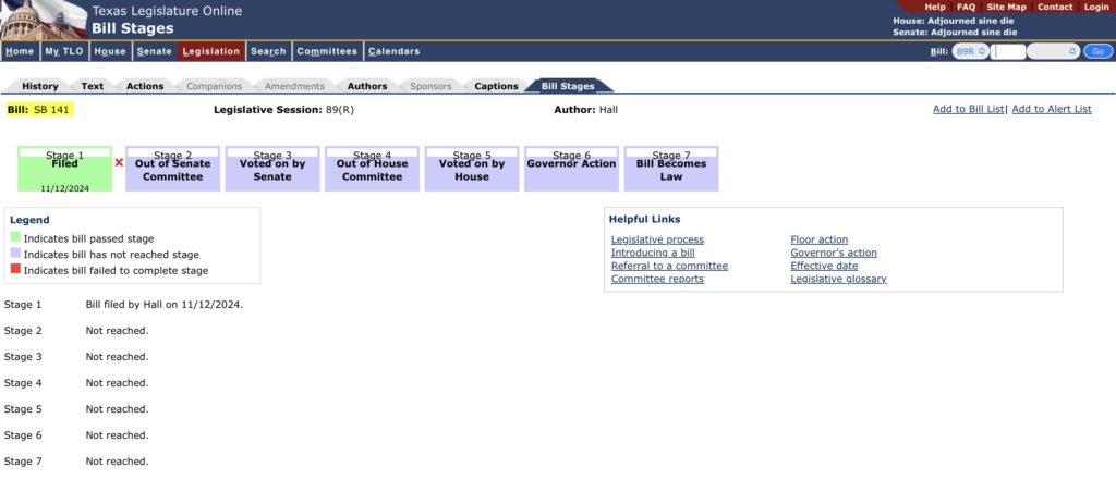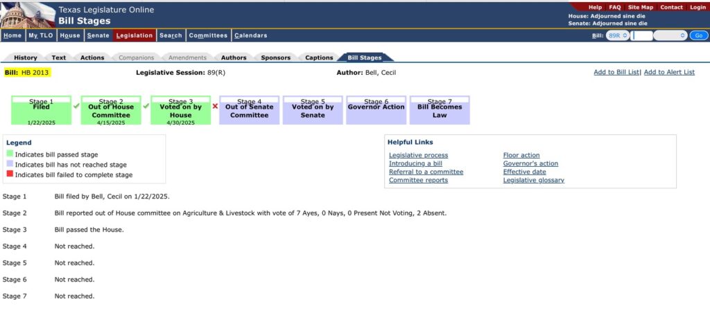 Last October after contacting our state representative Ryan Guillen, we received an email from Bob McVey, Senior Advisor, to Rep Guillen.  Here’s what he said:
